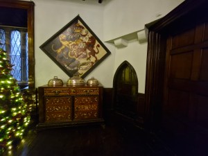 The tour continues at the castle, where the guide explains that a French family, the Talbots, lived there for 30 generations. It is now owned by the state and inhabited by various ghosts only, the most famous being Puck. Puck was a small jester who fell madly in love with one of the Talbot girls. When she didn’t reciprocate, he killed himself in despair, but regularly comes to watch visitors through a small door in the dining room (see pic.).